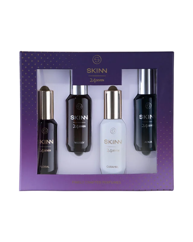 The Skinn 24seven Gift pack is crafted for those who need a long lasting perfume that fits seamlessly into any occasion, day or night. From Floral & Caramel for women to Aqua & Woody for men, it is the ultimate choice for luxurious indulgence as your everyday fragrance, on-the-go travel pack, or a gift for Birthdays & Anniversaries.